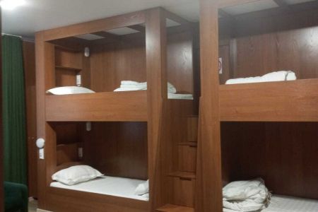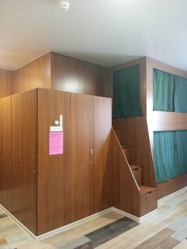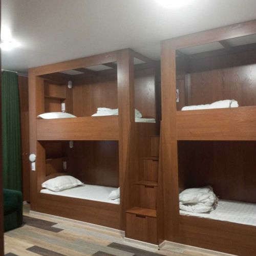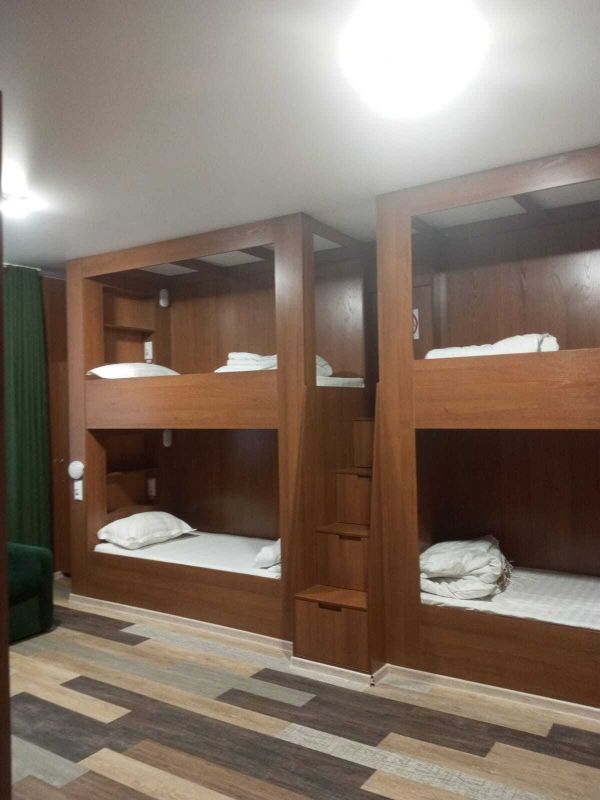Хостел размещен в двухэтажном корпусе. Жилой фонд включает 17 женских и мужских комнат разной вместимости — на 4, 5 и 6 человек. Все номера оборудованы преимущественно двухярусными кроватями, часть также располагает односпальными. Каждое спальное место укомплектовано набором постельных принадлежностей, большинство — отдельной шторкой. В комнатах предусмотрены места для хранения вещей, имеется телевизор, некоторые дополнены диваном. Общие удобства с душевыми, туалетами, раковинами, стиральными машинами оборудованы на этаже. Проживающим предоставляется доступ к Wi-Fi.